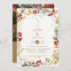 These Christmas invitations stand out for their botanical frame composition, where winter branches and green leaves intertwine with delicate red berries, evoking a natural and charming White Christmas. The balance between cool tones and warm accents creates a sense of harmony and elegance, perfect for a wedding during the festive season.