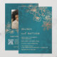 This elegant wedding invitation features rose gold line art flowers on a teal background. With a custom photo and a scannable qr code for your wedding website on the backside.