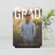 This modern graduation design features a clean, magazine-style layout with a full-bleed portrait photo on the front and bold, oversized “GRAD” typography for a confident, celebratory look. The soft natural background and warm lighting give the design a polished yet approachable feel, making it suitable for both high school and college graduates. On the back, the design transitions into a graduation announcement combined with a party invitation, including space for an additional photo and personalized event details. The overall aesthetic is timeless and versatile, perfect for sharing graduation news while inviting friends and family to celebrate this milestone.