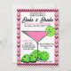 Pickleball bridal shower photo invitation. Serve up a slice of pink and green pickleball cosmo cocktails with our Dinks and Drinks Pickleball Bridal Shower Party invitation! Featuring a vibrant graphic of a pink Cosmo Cocktail adorned with green pickleballs shaped like lime slices. The border is our pink and green Pickleball Cosmo chevron, zig-zag pattern. This collection is perfect for celebrating the bride-to-be's last swing before the ring or gathering your favorite pickleball pals for a smashing good time. From eye-catching invitations to matching napkins, plates, cups, and wine glasses in shades of pink and green, our collection has everything you need to make your pickleball-themed bridal shower and/or bachelorette party unforgettable.