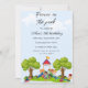Comemore seu aniversário com esse convite de aniversário de piquenique de menino ou menina, com crianças brincando num parque.