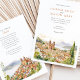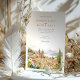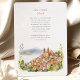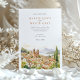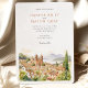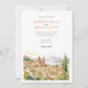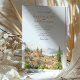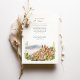 Convide seus convidados para uma comemoração romântica com este convite encantador de casamento em aquarela, mostrando a bela cidade de Valle de Bravo, México. O trabalho de arte captura, de forma requintada, o Parroquia de San Francisco de Asís, com os seus terraços quentes e matizes ocre, entalados entre um aglomerado de casas coloniais brancas e natas com telhados tradicionais de terracota, todos em cascata em direção ao lago sereno (lago Avándaro). Montanhas azuis distantes completam o cenário. A cena é trazida à tona com toques de verde-luxuoso, incluindo árvores de alto, verde-escura, cactos de pera-picante verde-umedecida e vários arbustos verdes. Criado em um estilo aquoso romântico, este convite é perfeito para um casamento de destino no México ou para casais que apreciam cidades pitorescas e charme colonial. A frente apresenta elegantemente os detalhes do seu casamento, enquanto o verso oferece "Os detalhes mais finos" para informações de convidado e frequentemente apresenta imagens estilizadas de folhetos verdes que enquadram o texto. A paleta de cores inclui terracottas quentes, ocres, cremes, brancos, vários tons de verde para a folhagem e blues macios para a água e montanhas distantes.
