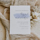 Este convite de casamento simples e minimalista apresenta um pincel azul empoeirado destacando os nomes dos casais no roteiro de cinza de carvão tradicional. Personalize o texto restante na fonte do serif. A parte de trás da placa é uma sombra coordenadora de azul poeirento sólido.