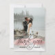 Diga obrigado aos seus convidados com esses belos e exclusivos cartões-postais. Folha de ouro rosa falso com pincelada e agradecimento encantador em caligrafia. Personalize-os adicionando os nomes da noiva e do noivo e a data do casamento ou aniversário com foto / imagem. O verso do cartão tem uma opção de mensagem