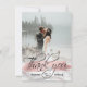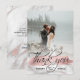 Diga obrigado aos seus convidados com esses cartões-postais lindos, únicos e personalizados. Pincelada dourada rosa falsa com agradecimento encantador em letra cursiva. Fundo em mármore cinza claro com folha de ouro rosa. Personalize-os adicionando os nomes da noiva e do noivo e data do casamento ou aniversário com foto / imagem. O verso do cartão tem uma mensagem opcional