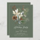 Este elegante convite para festas de Natal apresenta um belo galho de pinheiros, flores brancas, bagas ocas e pinecone em fundo verde. O convite é perfeito para convidar seus amigos e família para um encontro festivo. O design geral é festivo e sofisticado, e o convite é para impressionar seus convidados.