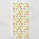 Cartão de menu com um padrão de Natal giro, com cones de pinheiro e holly sobre fundo de aquarela amarela com pequenos círculos brancos espalhados por aí.