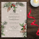 Capture a magia de uma terra maravilhosa de inverno com este belo convite para casamento, cuidadosamente feito para incorporar a elegância e charme do seu dia especial. Deixe o encanto dos galhos de pínus, cones de pínus, holly e neve caindo tecer a história do seu amor em uma tapeçaria mágica que deixará uma marca indelével nos corações de todos que o receberem.
