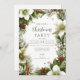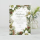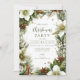Traga elegância eterno aos seus cartões de natal com este design de Natal verde e branco. Apresentando flores de inverno, galhos de pinheiros verdes e sotaques naturais suaves, ele captura perfeitamente o charme pacífico da estação. A combinação de flores delicadas e verde rústico faz dela uma escolha refinada, mas acolhedora, para espalhar alegria festiva.
