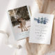 Casamento de fotos simples e elegante Salve o cartão de data com neve aquosa e pinheiro de montanha paisagem de inverno.