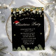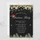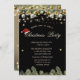 Um convite elegante para festas de Natal com galhos de árvores de Natal, bolas e lanternas de cordas com o chapéu de Papai Noel em um fundo preto. Estes belos convites de Natal são perfeitos para convites de festas de janto de Natal, convites para troca de presentes de Natal, angariadores de fundos de Natal, convites para bolas de férias e outros eventos realizados durante o mês de dezembro. Use apenas os campos modelo para adicionar suas próprias informações de evento.