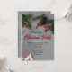 Pine tree branches with holly berries on a grey background. These beautiful Christmas invitations are perfect for Christmas dinner party invitations, holiday gift exchange invitations, Christmas fundraisers, holiday ball invitations, and other events held during the month of December.