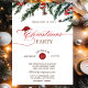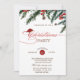 Um convite elegante para festas de férias com galhos de pinheiros de Natal com bagas e um chapéu de Papai Noel em fundo branco. Estes belos convites de Natal são perfeitos para convites de festas de janto de Natal, convites para troca de presentes de Natal, angariadores de fundos de Natal, convites para bolas de férias e outros eventos realizados durante o mês de dezembro. Use apenas os campos modelo para adicionar suas próprias informações de evento.