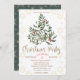 Um convite elegante para festas de férias com uma árvore de Natal aquosa em fundo verde. Estes belos convites de Natal são perfeitos para convites de festas de janto de Natal, convites para troca de presentes de Natal, angariadores de fundos de Natal, convites para bolas de férias e outros eventos realizados durante o mês de dezembro. Use apenas os campos modelo para adicionar suas próprias informações de evento.