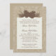 O elegante convite no estilo branco e damasco de inverno com uma silhueta de pinho marrom.