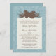 O elegante convite dos estilos branco e damasco azul de inverno com silhueta de pinho marrom.