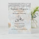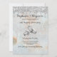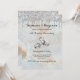 Convite Plano de Aniversário de Casamento Prateado de 25 Anos Chic e elegante, com anéis de casamento de platina em um fundo celestial lindo com pingentes de brilho prateado falso caindo do topo. Todos os detalhes da tipografia decorativa são fáceis de personalizar completamente. Um design moderno e sofisticado com um toque de glamour cintilante.