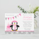 Convites Pinguim Flocos de Neve Rosa Inverno de inverno Ond