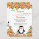 Convites Pinguim Preto e Laranja | Flores Laranja e Verde