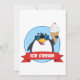 Um pinguim em pé segurando uma sorvete com uma faixa que diz sorvete. Este design parece realmente eficaz nestes Convites