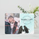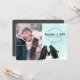 Cor azul-gelo e dois pinguins de inverno com texto arredondado divertido, enquanto salva o anúncio do casamento com um lugar para uma foto na frente e no verso. Grande área aberta no fundo na sua escolha de cor para adicionar muitos detalhes importantes do casamento no lado oposto deste adorável salvamento da data com pinguins bonitinhos caminhando juntos.