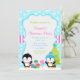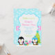 Esta convite de festas de Natal do Pinguim mostra uma linda família de pinguins em uma cena de inverno com eles parados ao lado de uma árvore de Natal. (33) Gráficos por ClipArtopia