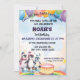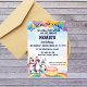 Convide seus convidados com este convite de festas de aniversário fofo com pinguins adoráveis com elementos vibrantes em uma cinza de luz. Adicione seus detalhes de evento a este modelo fácil de usar para torná-lo um convite único.