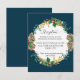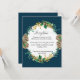 INSERT PARA RECEPCÃO DE CASAMENTO PARA SEUS CONVITES. "Convite de Recepção de Casamento com Cones de Pinheiro de Natal Dourados da Marinha." Fundo azul-marinho profundo com neve de glitter dourado é combinado com uma grinalda de aquarela feita de simples ramos de folhas de sempre-verde e folhagem de bagas e folhagem de azevinho no topo finaliza o design. Toda a arte foi pintada pela renomada e licenciada artista internacionalmente, Audrey Jeanne Roberts, copyright.