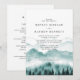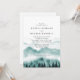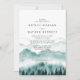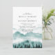 Convite de casamento elegante e rústico apresenta montanha em aquarela com árvores e iniciais das noivas e noivos no verso com detalhes do casamento.