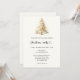 Um fundo bege suave. Decorado com um pinheiro coberto de neve. Personalize e adicione os detalhes. Texto preto. Código QR para o seu site para RSVP e detalhes do partido.