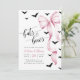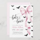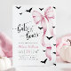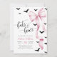 Celebrate your little ghoul in style with this cPink and Black Halloween Baby Shower Invitation. Featuring a pink bow and fluttering bats on a clean white background, it's perfect for an elegant and moody Halloween-themed event.