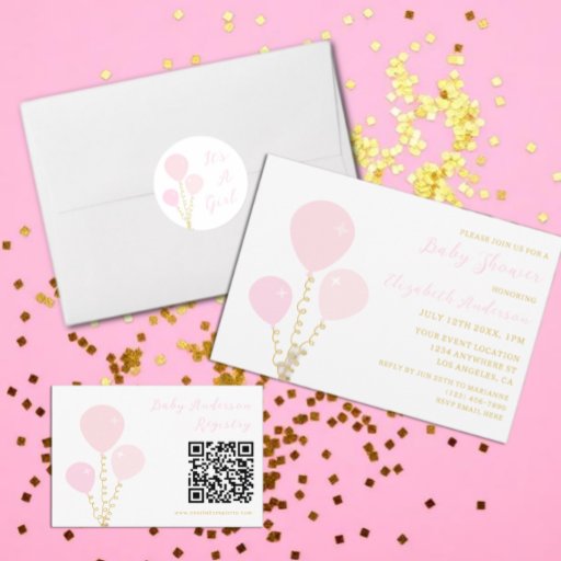 Convites Pink Balloons Girl Baby Shower