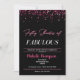 50 e fabuloso convite de aniversário para mulheres com fundo negro e confete cor-de-rosa. Excelente para 50 e fabulosas festas do tema. Personalize com os detalhes do seu partido.