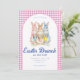 Convites Pink Blue Floral Bunny Watercolor Gingham Easter