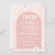 Convites Pink Boho Arch Daisy Young Wild e Três Aniversário