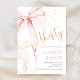 Pink Bow 30th birthday invitation. Modern feminine design in blush pink and gold. Features trendy watercolor coquette bow, and heart script font "thirty". Perfect for an elegant style women's bday celebration. Personalize with your own details. Printed Zazzle invitations or instant download digital printable template.