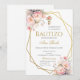 Pink Bow Baptism Floral invitation in Spanish, Invitación de moño rosa para Bautizo en español