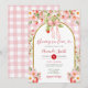 Pink Bow Coquette Berry in love strawberry Bridal Shower Floral Gingham Invitation