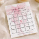 Pink Bow Bingo Baby Shower Game Card. Available digitally or printed. Personalise the text as required. A soft blush oink bow is tinted in the background.