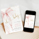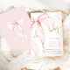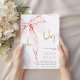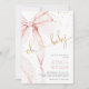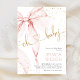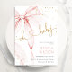 Pink Bow Elegant girl baby shower invitation. Modern minimalist design in blush pink and gold. Features trendy watercolor coquette bow, and heart script font Oh Baby. Perfect for an elegant style girl shower celebration. Personalize with your own details. Printed Zazzle invitations or instant download digital printable template.