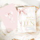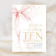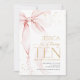 Pink bow girl's 10th birthday invitation. Modern feminine design in blush pink and gold. Features trendy watercolor coquette bow, calligraphy heart script font and modern typography TEN. Perfect for an elegant style girl's tenth bday celebration. Personalize with your own details. Printed Zazzle invitations or instant download digital printable template.
