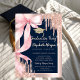 Convites Pink Bow Glitter Grad Cap,Drips Photo Navy Blue