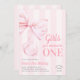 "Girls just wanna be One" Pink Bow First Birthday Invitation for baby girls