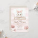 Celebrate the arrival of your little one with this adorable baby shower invitation featuring a sweet bunny with a pink bow. The soft blush tones, delicate flowers, and watercolor stripes make this design perfect for a girl’s baby shower or a springtime celebration.