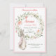 Belo e delicado coelho de Algodão rosa, do clássico "O Conto de Pedro o Coelho" de Beatrix Potter. A idade na frente do cartão pode ser alterada para a idade da sua aniversariante. Este convite contém também uma coroa floral rosa e verde. Personalize este convite facilmente preenchendo os campos. Se desejar, você poderá personalizar ainda mais a placa movendo e alterando o estilo e a cor da fonte. Por favor veja o "Floral Pink Peter the Rabbit Cute Bunny Birthday Collection" na minha loja para encontrar itens para a festa.