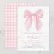 Celebrate your child's first birthday with this elegant pink watercolor bow themed invitation.