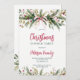 A charming blend of vintage elegance and modern coquette flair, this Christmas dinner invitation features watercolor greenery, pine branches, berries, and a soft pink bow accent. Perfect for those who love timeless style with a feminine twist. This design brings a grandmillennial touch to your festive celebration, ideal for cozy family dinners or chic holiday gatherings.
