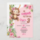 Convites Pink Curious Monkey Savannah Theme Birthday