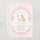 Celebrate a precious new arrival with this sweet Little Bunny baby shower invitation. Featuring an adorable watercolor bunny illustration, soft pink stripes, delicate floral accents, and charming bows, this design is perfect for a baby girl baby shower with a gentle, storybook feel.