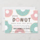 Esta ROSQUINHA "que quer perder esta festa", convite de aniversário apresenta rosquinhas com ícones e borrifadas cor-de-rosa e verde-menta em um fundo branco. O verso apresenta um fundo verde claro de menta com borrifagens. Personalize para suas necessidades. Você pode encontrar mais produtos correspondentes na minha loja.